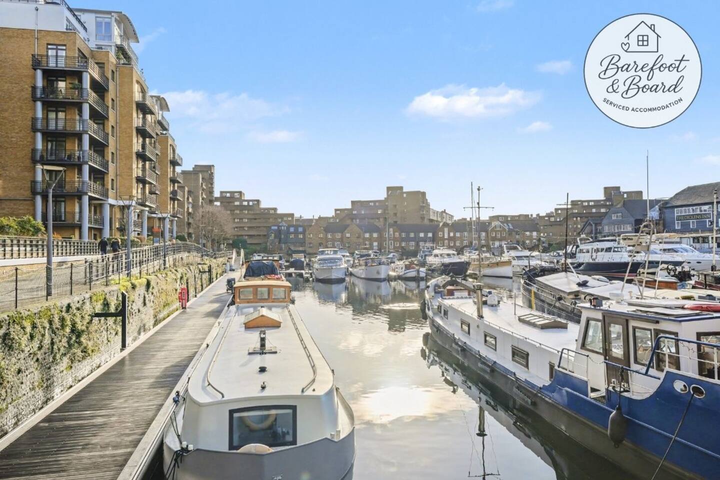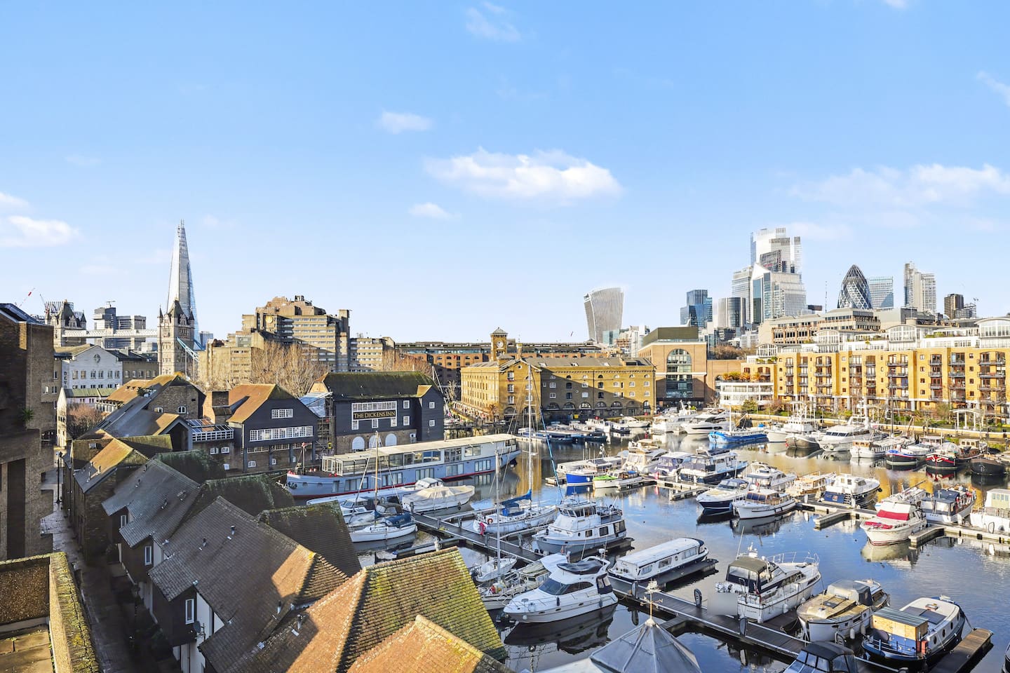The apartment is set within the historic surroundings of St Katherine's Dock, one of London's most charming and atmospheric waterside locations. Once a busy Victorian dock serving the British Empire, the area has been beautifully regenerated into a peaceful marina surrounded by cobbled walkways, boats, restaurants and cafes - offering a rare sense of calm in central London. Despite its tranquil setting, you'll be staying right in the heart of the city, with many of London's most famous landmarks just minutes away on foot. Tower Bridge and Tower of London only a few minutes walk away. Trinity Square Gardens - a quiet green space near the Tower, ideal for a short stroll. HMS Belfast - around 15 minutes on foot. Tower Millennium Pier - around 12 minutes on foot. From here, you can hop on a river boat (a really scenic way to get around) to destinations including: - Westminster & The London Eye - Embankment - Canary Wharf - Greenwich It is great to take a river boat during the day and walk back to the calm of St Katherine's Dock in the evening. London Bridge - 1.4 miles away. Borough Market - 1.4 miles away. London Eye - 2.9 miles away. Bars, restaurants & coffee shops: - St Katherine's Dock offers relaxed waterside dining, cocktail bars and cafes, just a couple of minutes walk from the apartment. - Moretown is an area just outside the front of the apartment block with cafes, pubs, other services as well as a Waitrose for groceries. Whether you want a quiet coffee, a relaxed dinner, or a lively night out, everything is close-by.